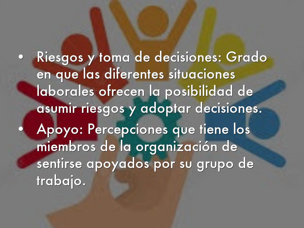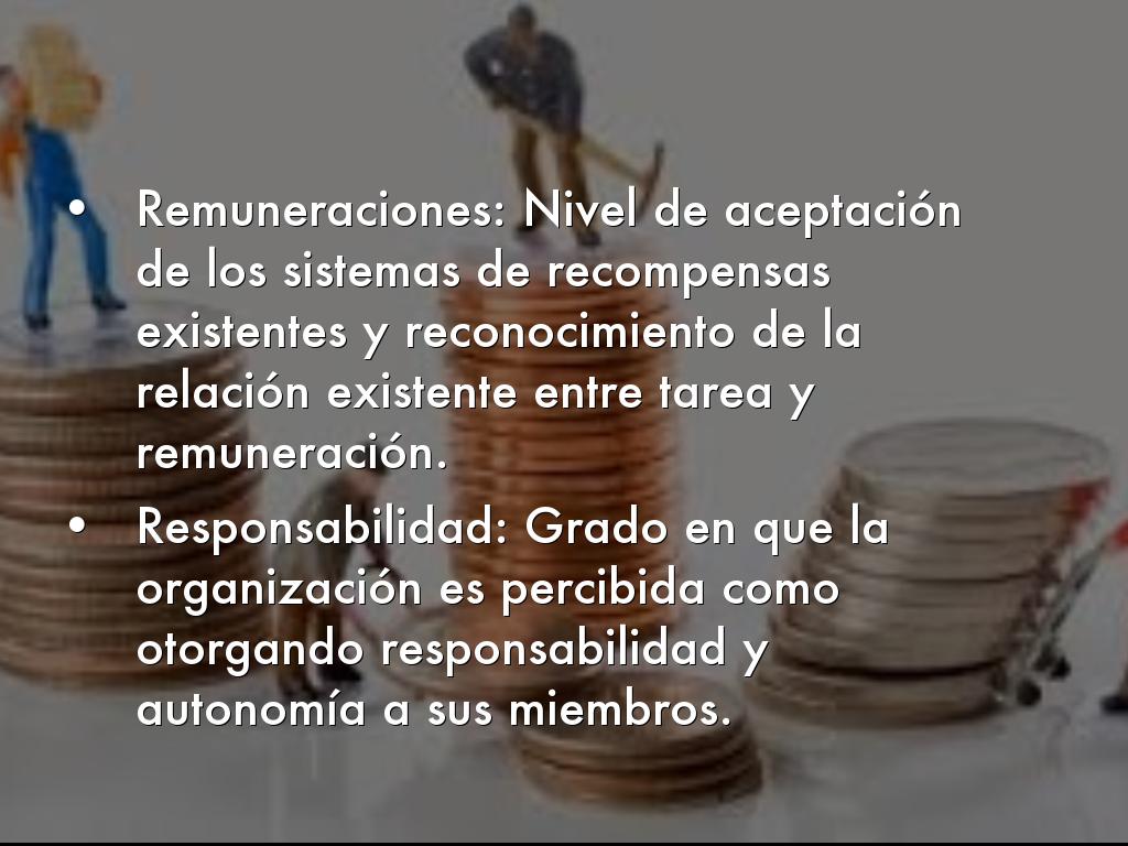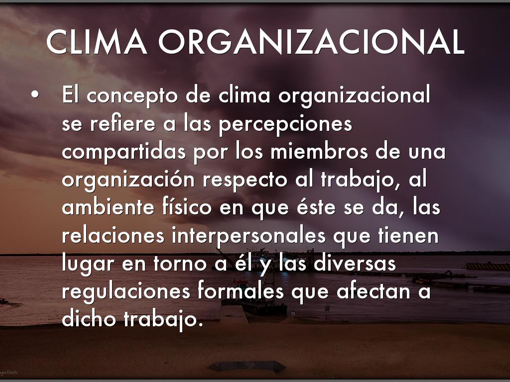 El concepto de clima organizacional se refiere a las percepciones compartidas por los miembros de una organización respecto al trabajo, al ambiente físico en que éste se da, las relaciones interpersonales que tienen lugar en torno a él y las diversas regulaciones formales que afectan a dicho trabajo.