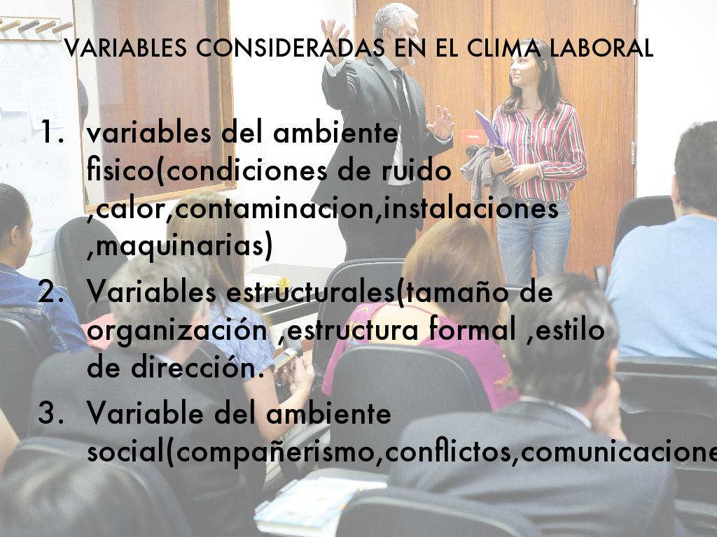 Variable del ambiente social(compañerismo,conflictos,comunicaciones.