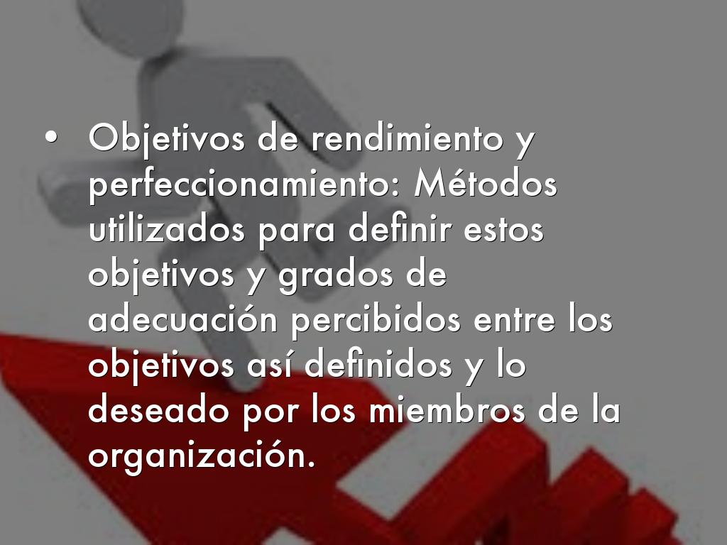 Objetivos de rendimiento y perfeccionamiento: Métodos utilizados para definir estos objetivos y grados de adecuación percibidos entre los objetivos así definidos y lo deseado por los miembros de la organización.