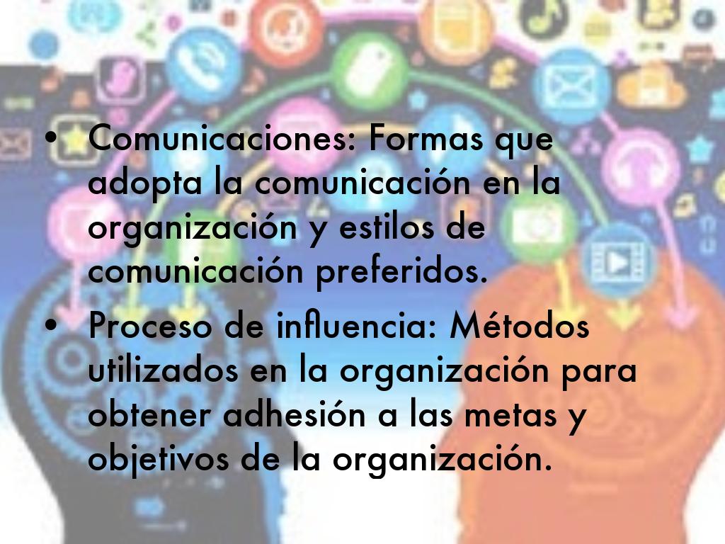 Procesos de control: Formas en que e control se distribuye y se realiza en la organización.