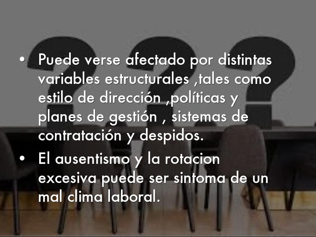Puede verse afectado por distintas variables estructurales ,tales como estilo de dirección ,políticas y planes de gestión , sistemas de contratación y despidos.