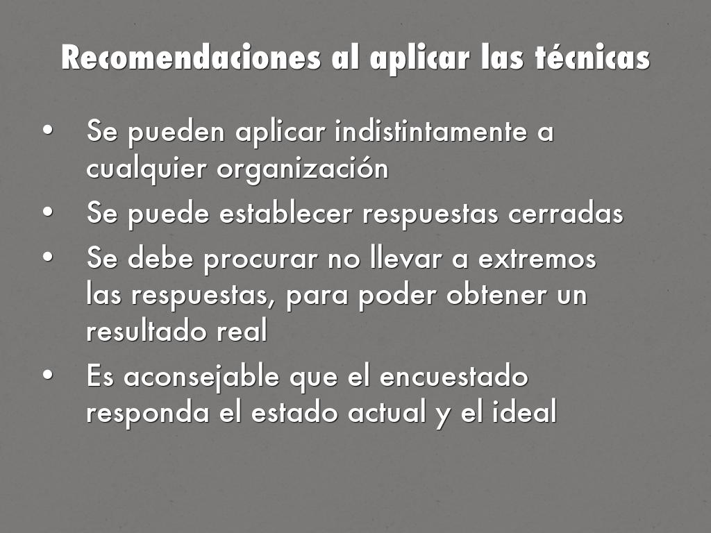 - Es aconsejable que el encuestado responda el estado actual y el ideal