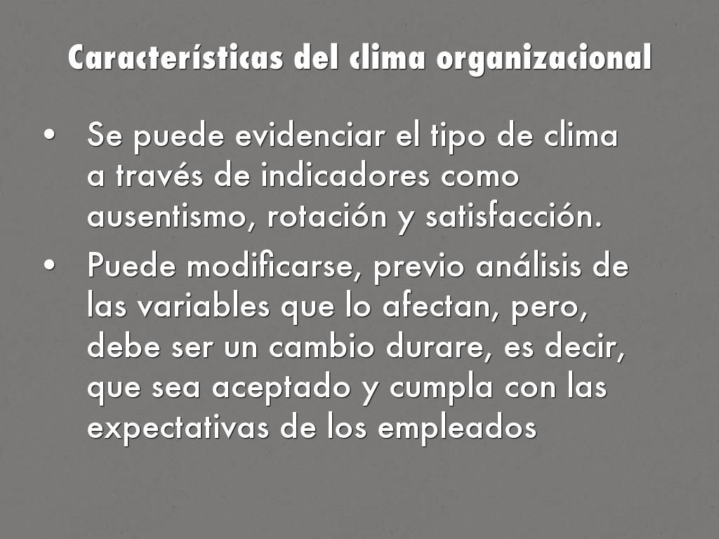 - Se puede evidenciar el tipo de clima a través de indicadores como ausentismo, rotación y satisfacción.