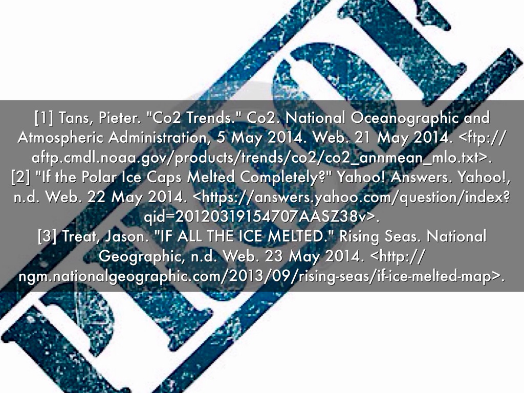 [2] "If the Polar Ice Caps Melted Completely?" Yahoo! Answers. Yahoo!, n.d. Web. 22 May 2014. .