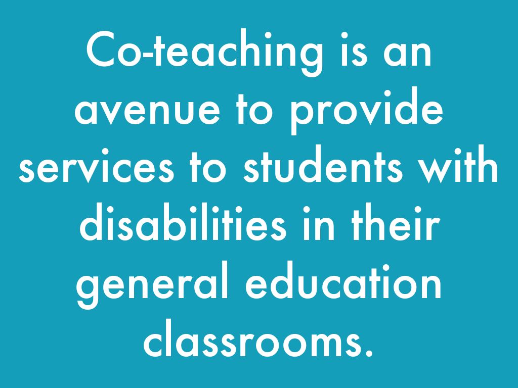 Co-teaching is an avenue to provide services to students with disabilities in their general education classrooms.