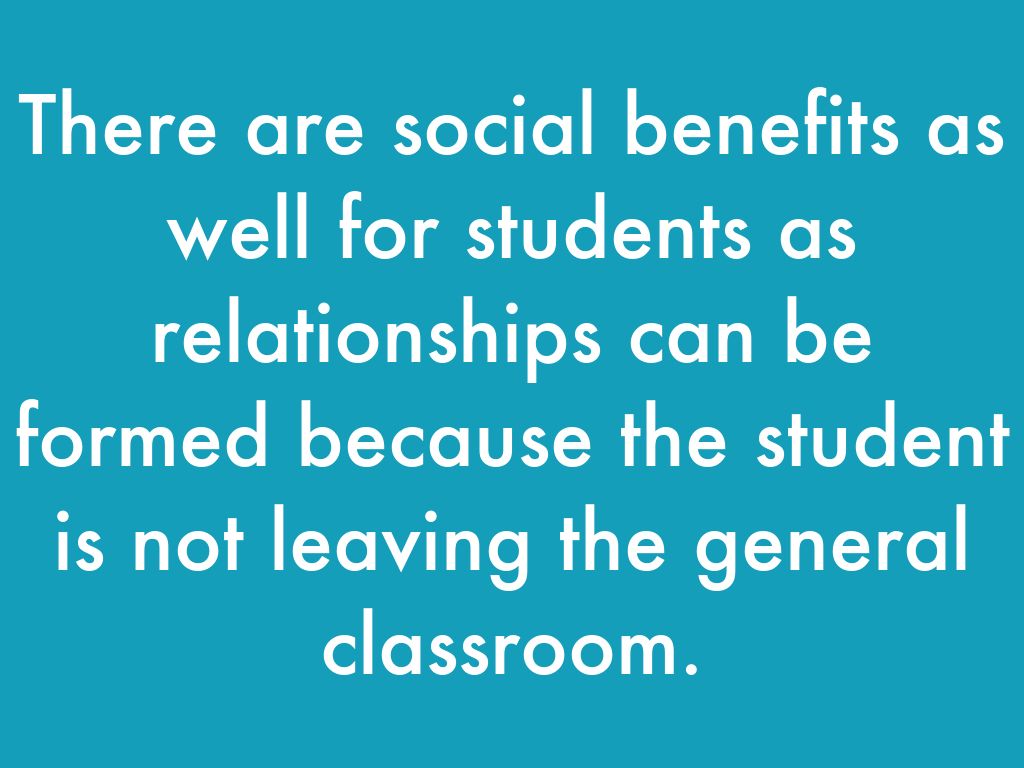 There are social benefits as well for students as relationships can be formed because the student is not leaving the general classroom.