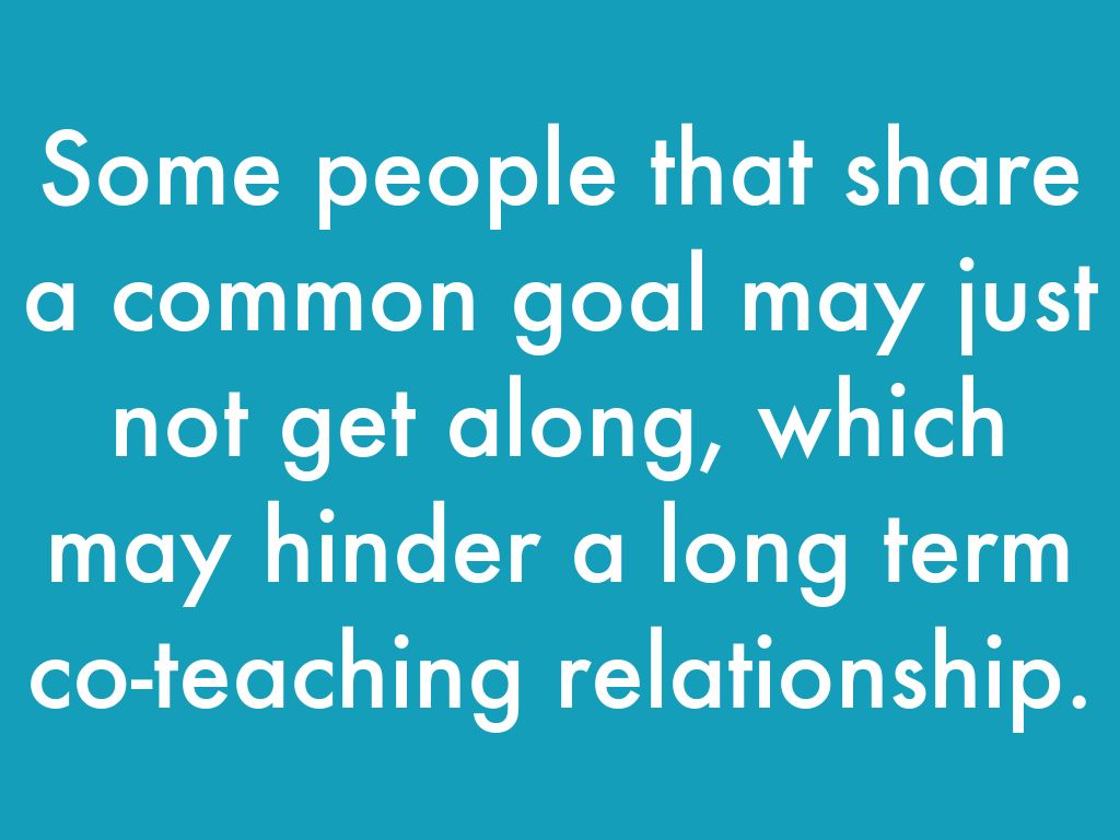 Some people that share a common goal may just not get along, which may hinder a long term co-teaching relationship.