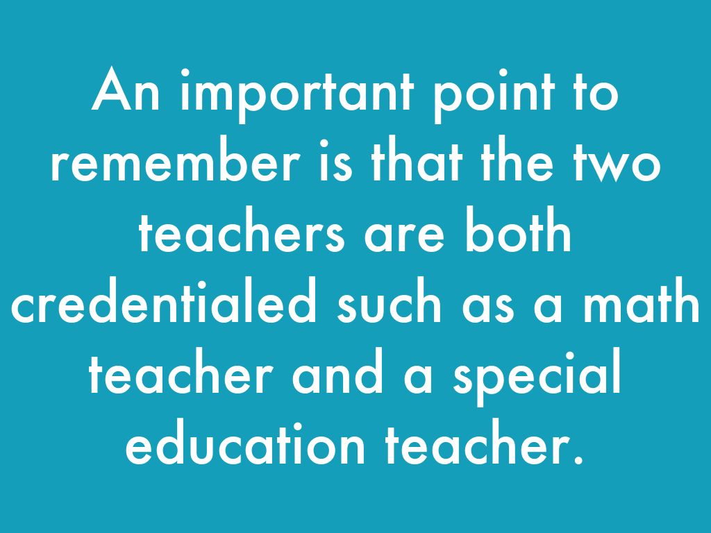 An important point to remember is that the two teachers are both credentialed such as a math teacher and a special education teacher.
