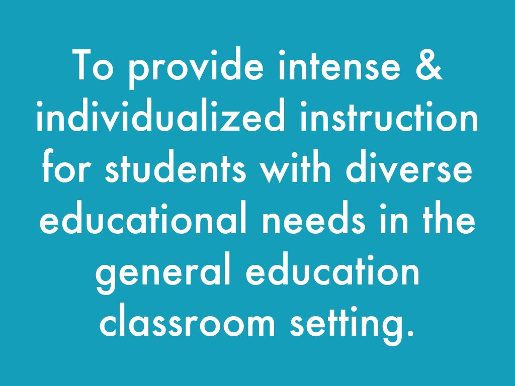 To provide intense & individualized instruction for students with diverse educational needs in the general education classroom setting.