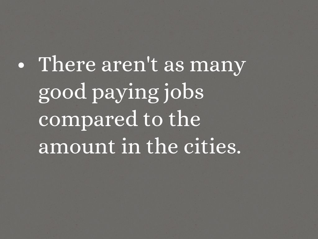 There aren't as many good paying jobs compared to the amount in the cities.