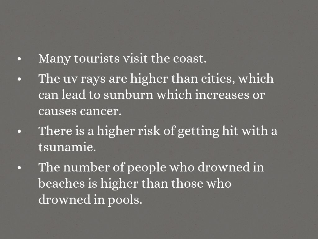 Many tourists visit the coast.