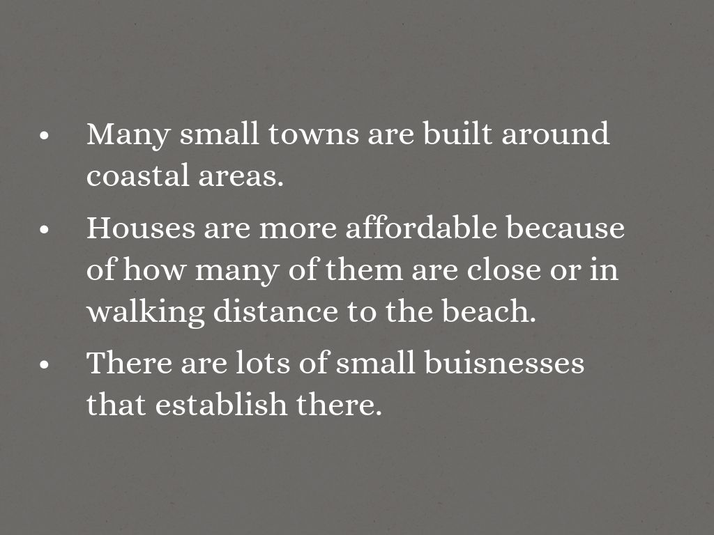 Many small towns are built around coastal areas.