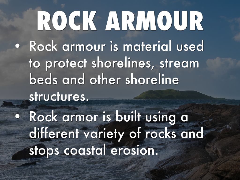 Rock armor is built using a different variety of rocks and stops coastal erosion.