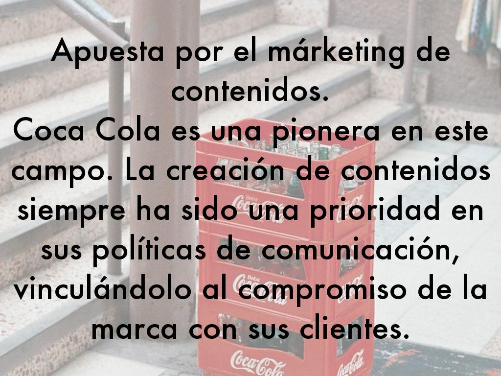 Apuesta por el márketing de contenidos. Coca Cola es una pionera en este campo. La creación de contenidos siempre ha sido una prioridad en sus políticas de comunicación, vinculándolo al compromiso de la marca con sus clientes.