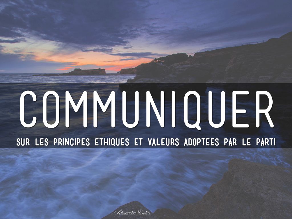 Cette présentation est une réflexion sur la nécessité d'un code éthique ou d'un code de conduite pour un parti politique, et propose une méthode pour le développer.