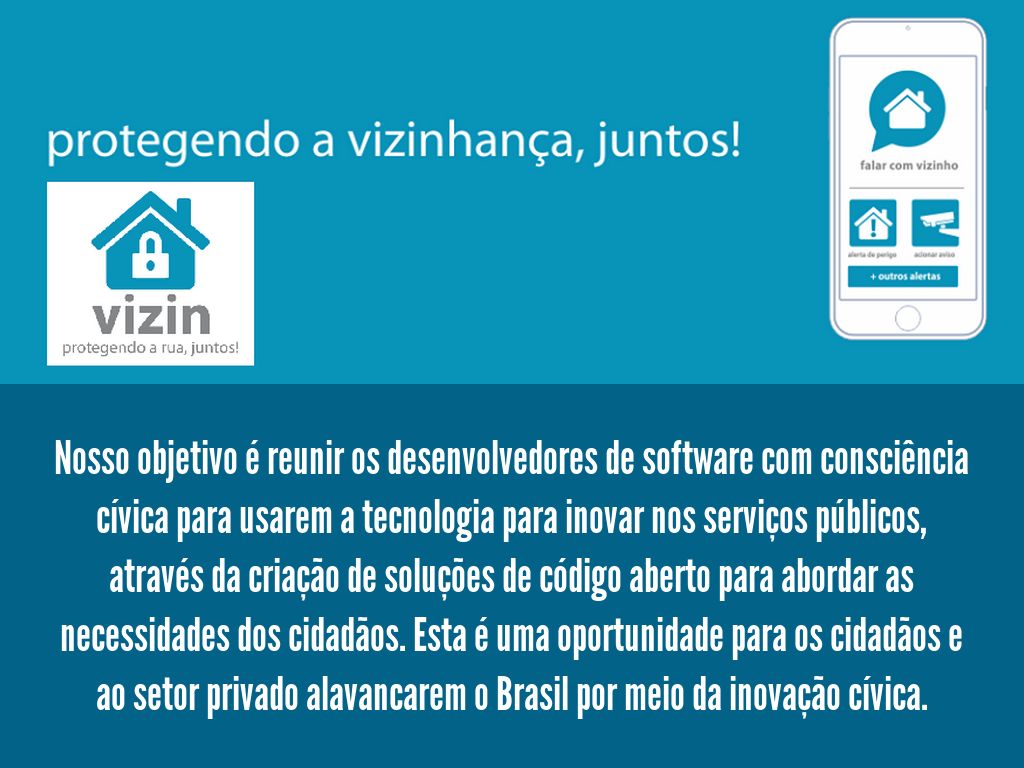 Nosso objetivo é reunir os desenvolvedores de software com consciência cívica para usarem a tecnologia para inovar nos serviços públicos, através da criação de soluções de código aberto para abordar as necessidades dos cidadãos. Esta é uma oportunidade para os cidadãos e ao setor privado alavancarem o Brasil por meio da inovação cívica.