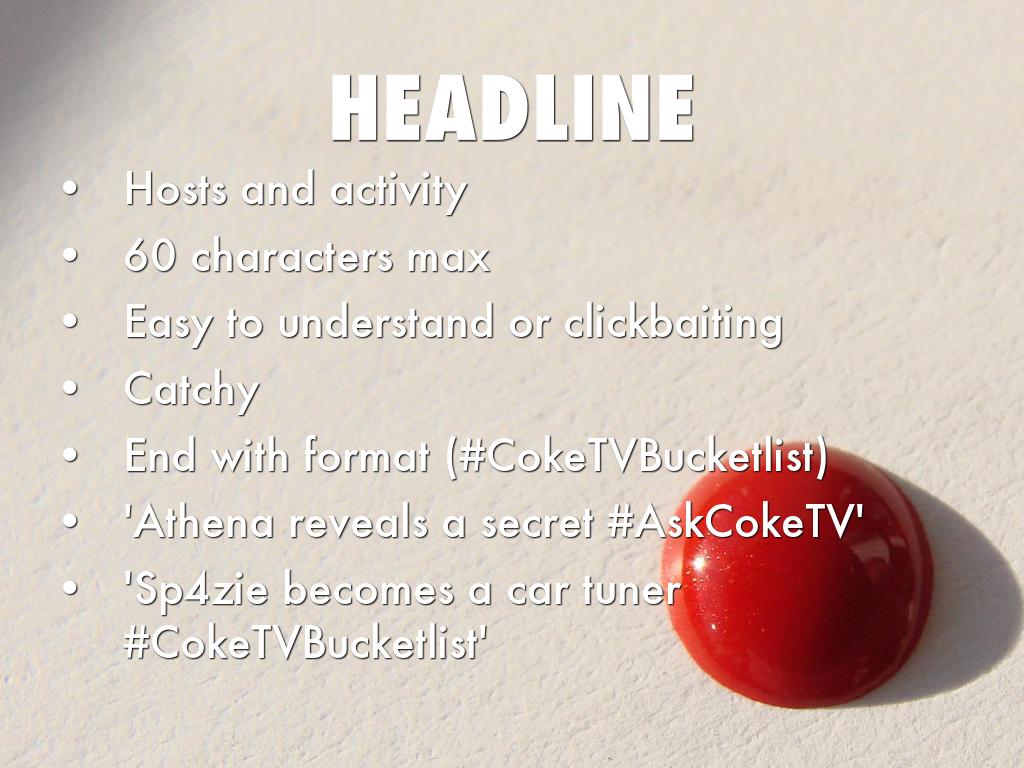 Always use: CokeTV, Coke TV, bucketlist, coketv bucketlist, bucket list, akscoketv, Coca Cola, cola, coca cola, cocacola, coca-cola, Kola, Kohla, Coke (small/Capital-misspelling)