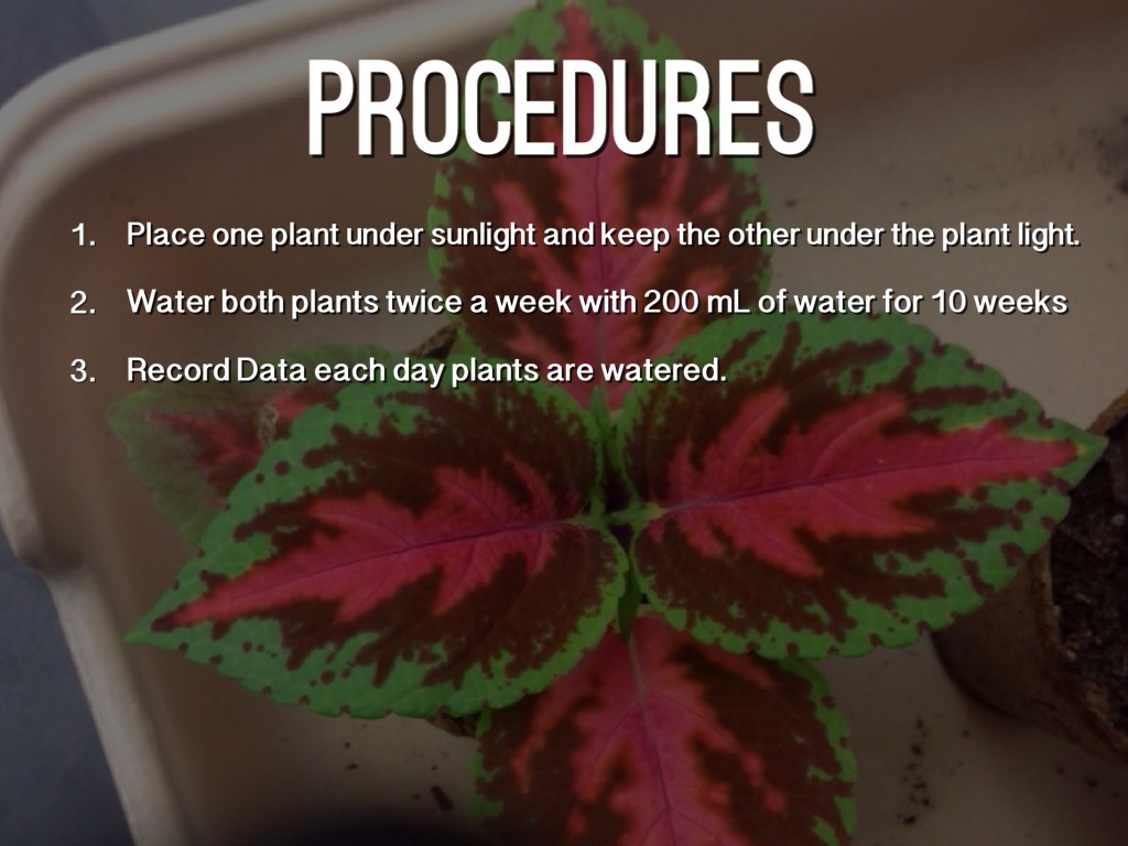 Water both plants twice a week with 200 mL of water for 10 weeks
