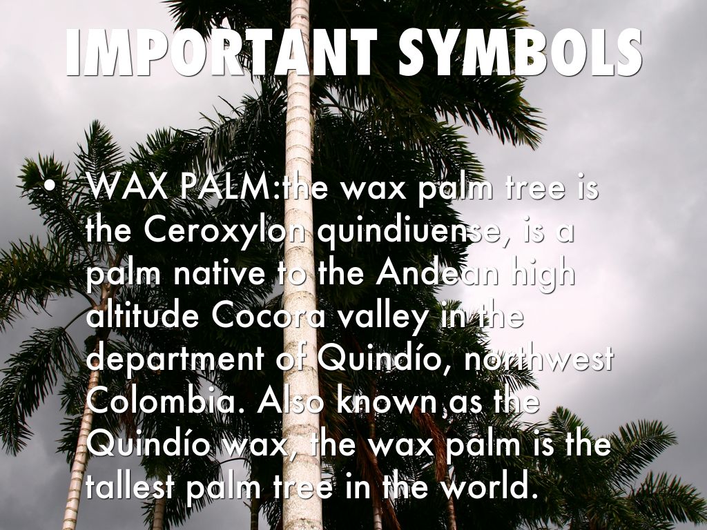 WAX PALM:the wax palm tree is the Ceroxylon quindiuense, is a palm native to the Andean high altitude Cocora valley in the department of Quindío, northwest Colombia. Also known as the Quindío wax, the wax palm is the tallest palm tree in the world.