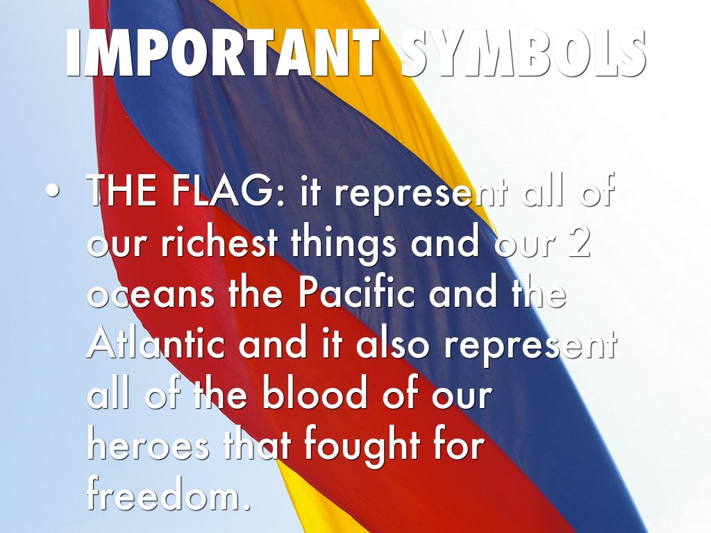 THE FLAG: it represent all of our richest things and our 2 oceans the Pacific and the Atlantic and it also represent all of the blood of our heroes that fought for freedom.