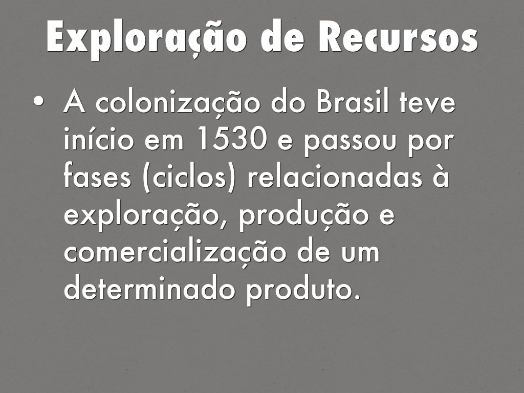 A colonização do Brasil teve início em 1530 e passou por fases (ciclos) relacionadas à exploração, produção e comercialização de um determinado produto.