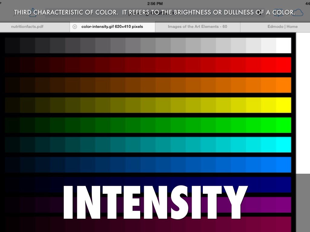 third characteristic of color. It refers to the brightness or dullness of a color.