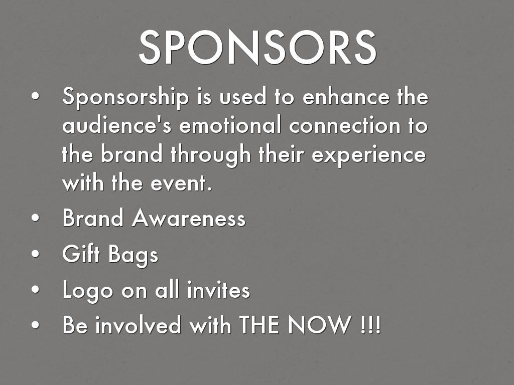 • Sponsorship is used to enhance the audience's emotional connection to the brand through their experience with the event.