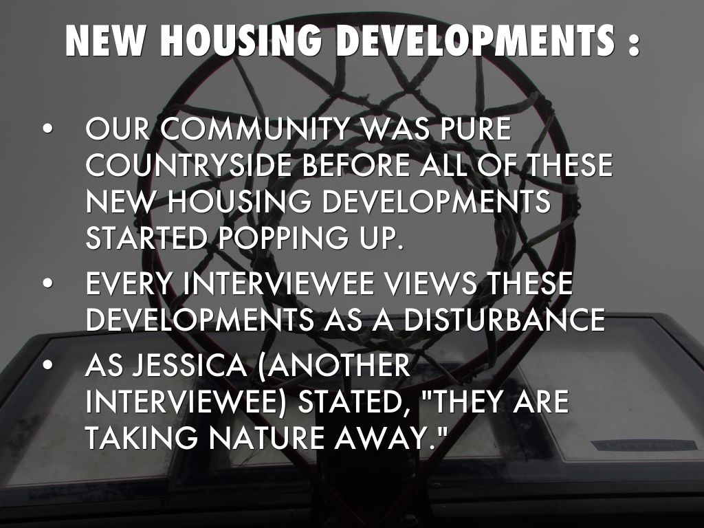 - AS JESSICA (ANOTHER INTERVIEWEE) STATED, "THEY ARE TAKING NATURE AWAY."