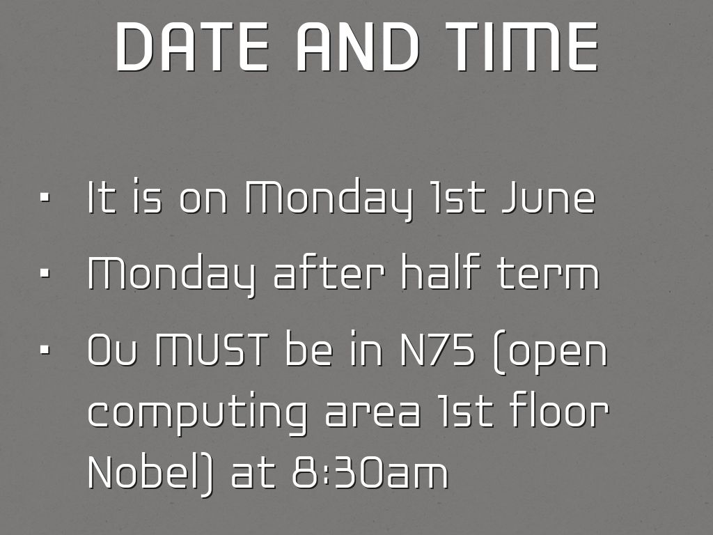 Ou MUST be in N75 (open computing area 1st floor Nobel) at 8:30am