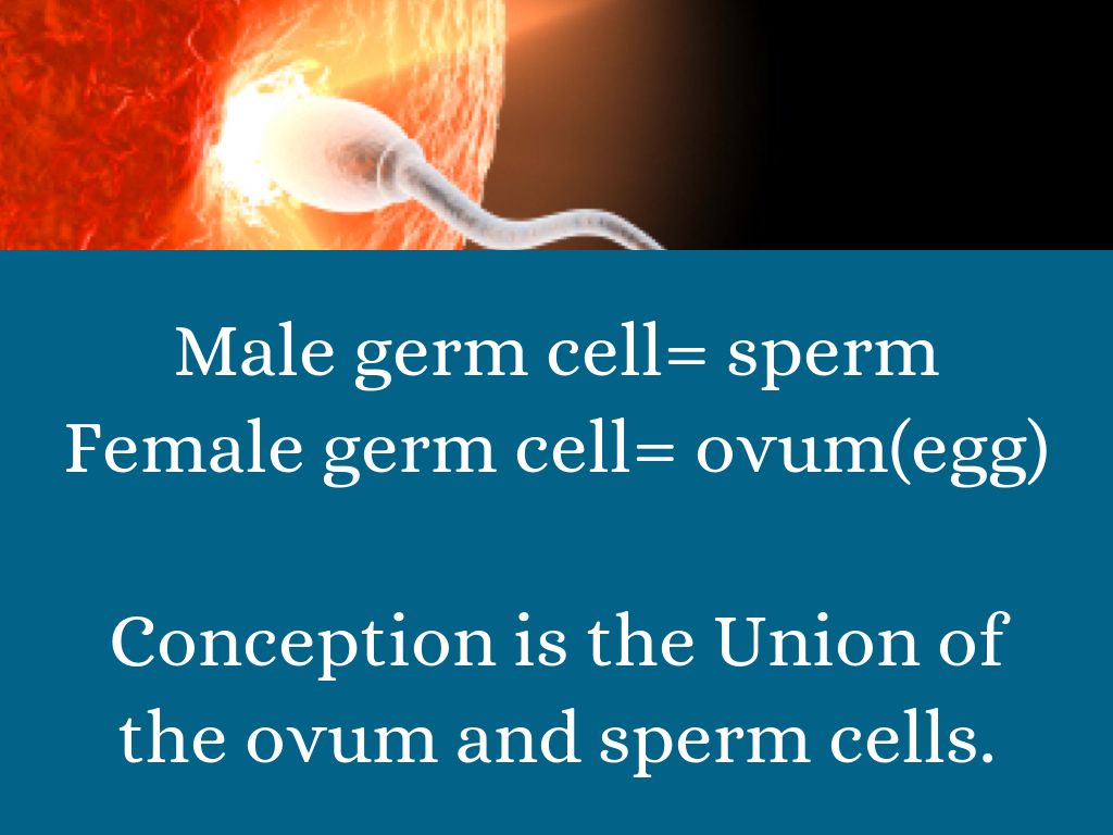 Conception is the Union of the ovum and sperm cells.