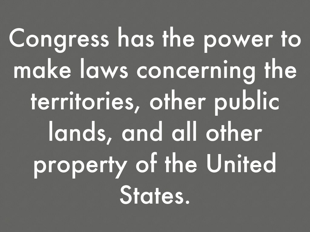 Congress has the power to make laws concerning the territories, other public lands, and all other property of the United States.