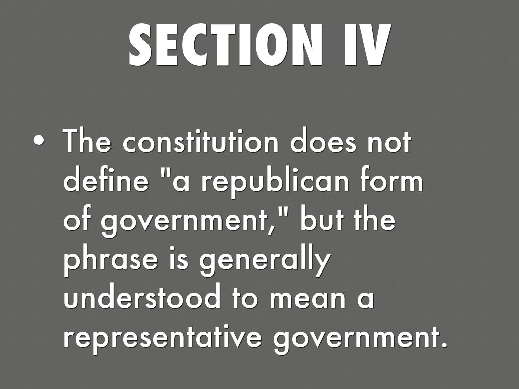 • The constitution does not define "a republican form of government," but the phrase is generally understood to mean a representative government.