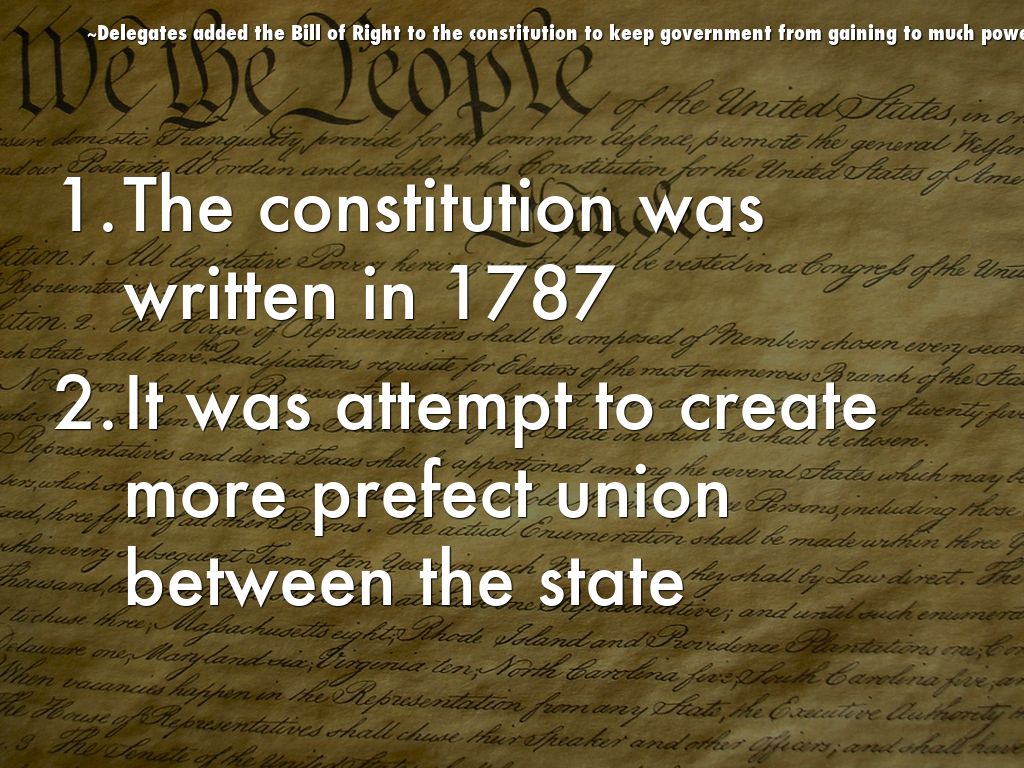 ~Delegates added the Bill of Right to the constitution to keep government from gaining to much power.