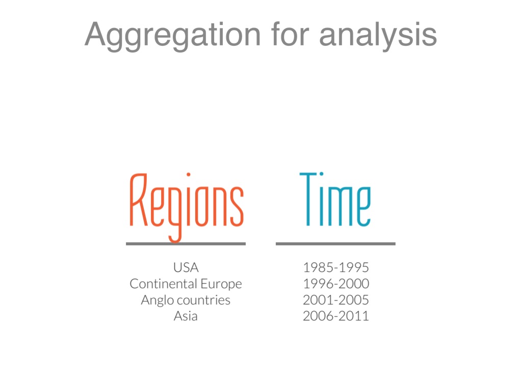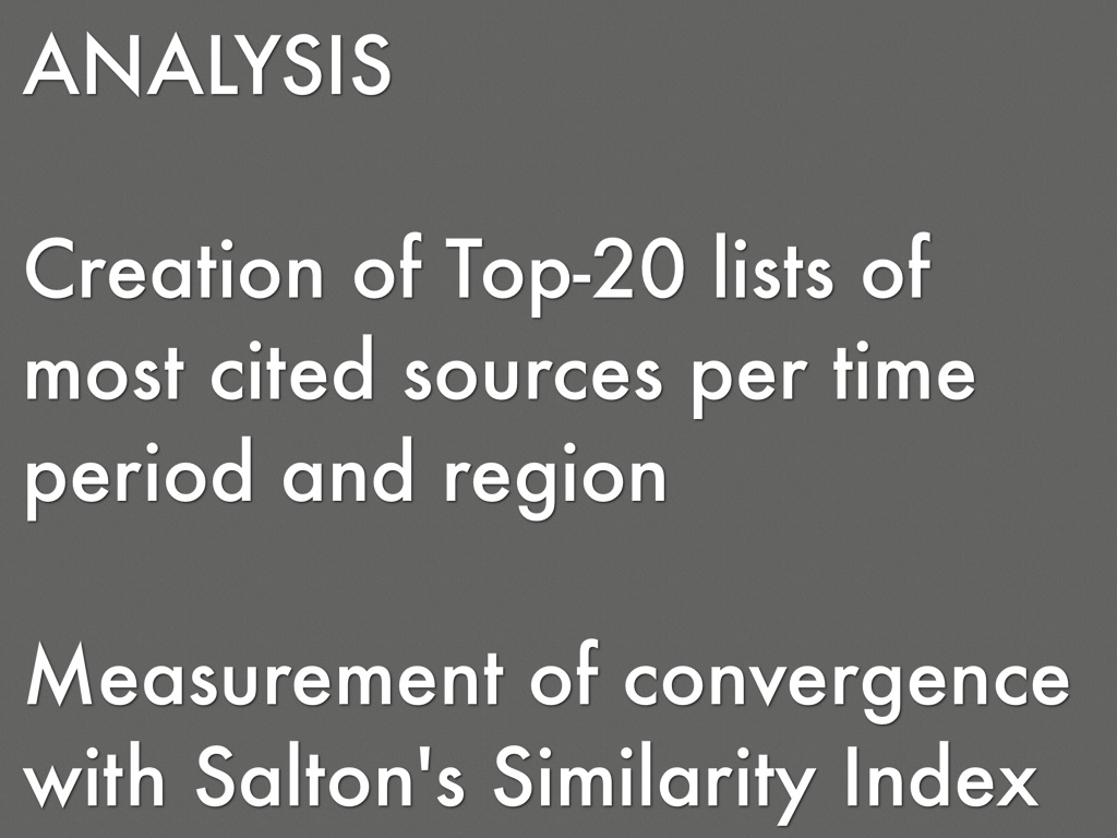 Creation of Top-20 lists of most cited sources per time period and region