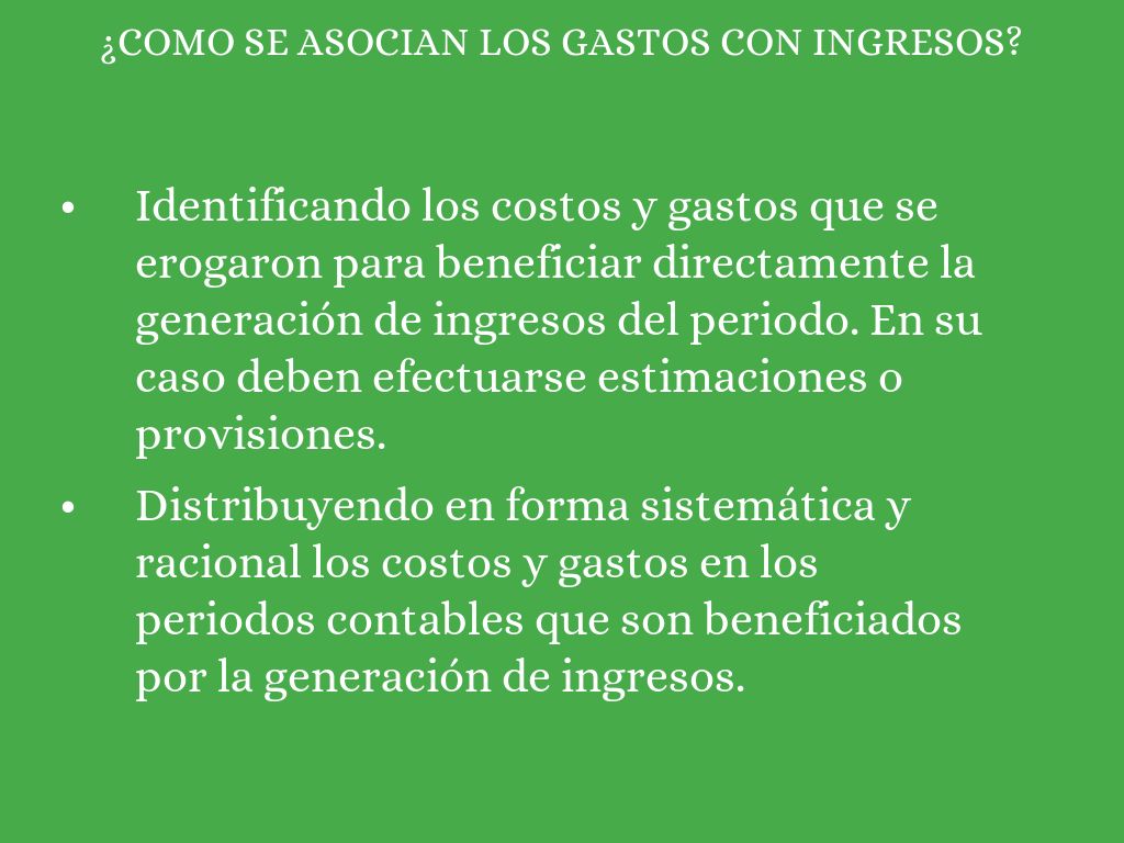 ¿como se asocian los gastos con ingresos?