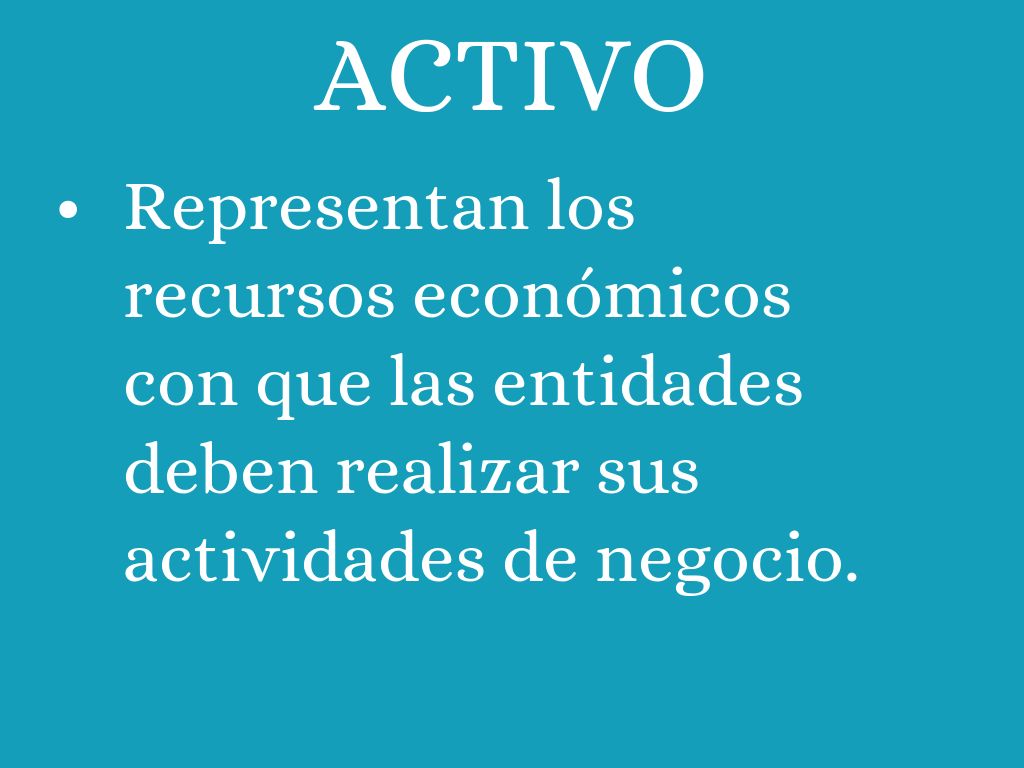 • Representan los recursos económicos con que las entidades deben realizar sus actividades de negocio.