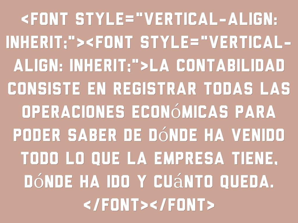La contabilidad consiste en registrar todas las operaciones económicas para poder saber de dónde ha venido todo lo que la empresa tiene, dónde ha ido y cuánto queda.