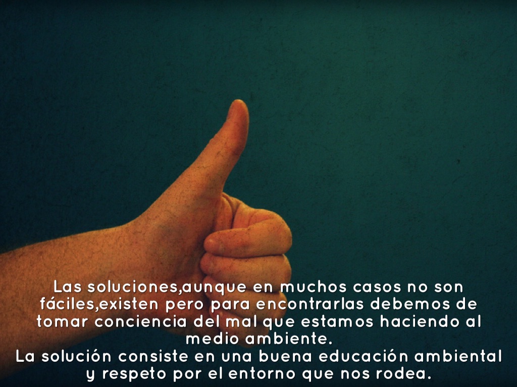 Las soluciones,aunque en muchos casos no son fáciles,existen pero para encontrarlas debemos de tomar conciencia del mal que estamos haciendo al medio ambiente. La solución consiste en una buena educación ambiental y respeto por el entorno que nos rodea.