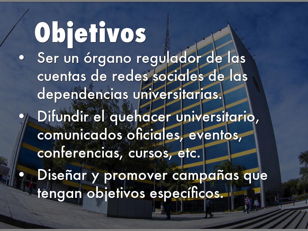 • Ser un órgano regulador de las cuentas de redes sociales de las dependencias universitarias.