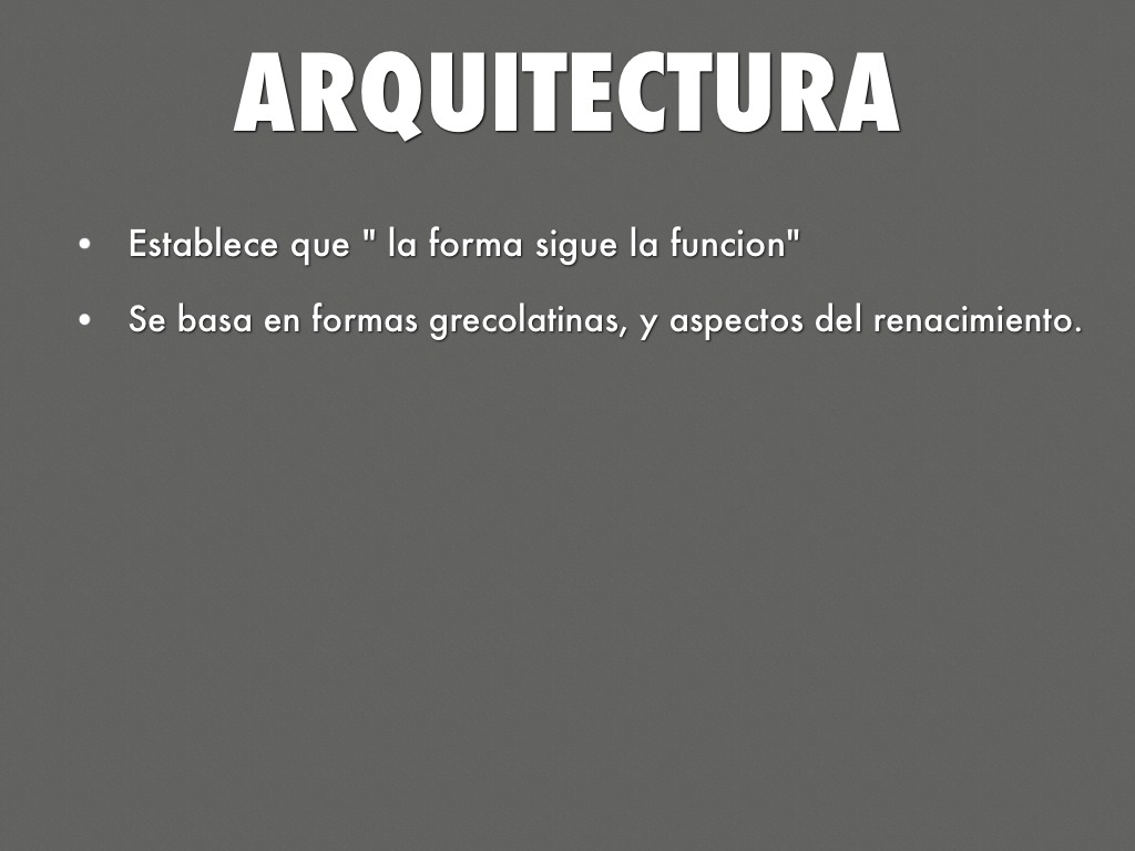 Se basa en formas grecolatinas, y aspectos del renacimiento.