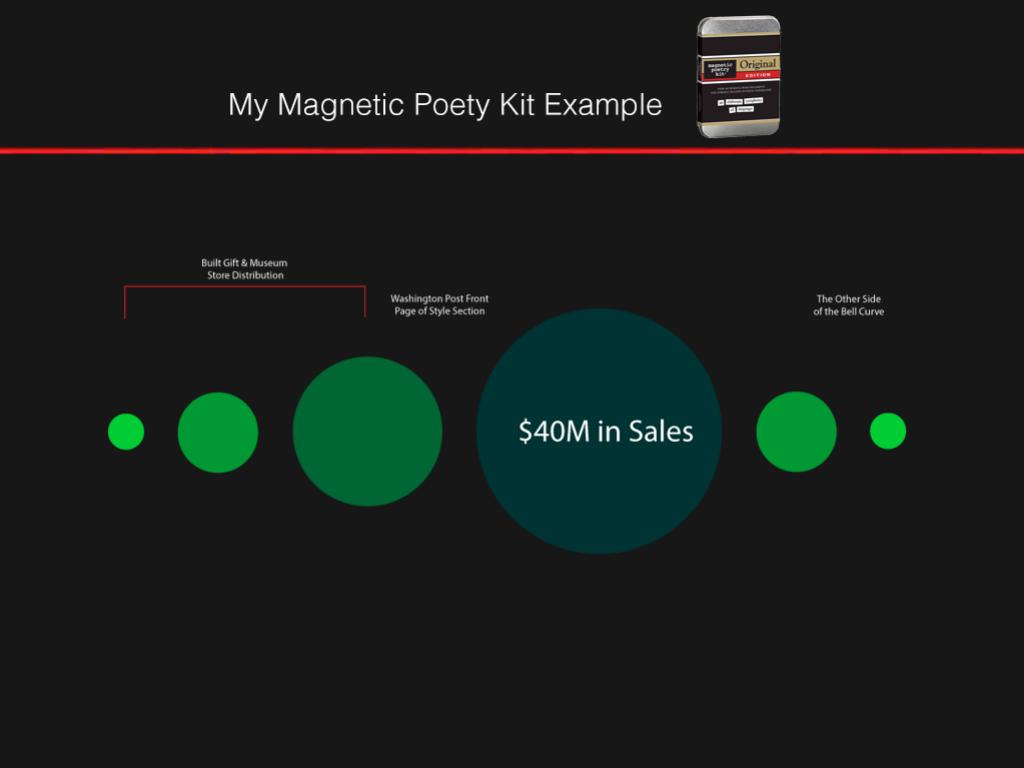 We built the right distribution model for words on magnets selling first in museum stores and then in small gift stores. Wish I could take credit for the brilliance of this strategy, but my partner Janet McKean was a buyer and store manager at the Museum of Contemporary Art in Chicago and that's why we sold into the right venue to create cool.