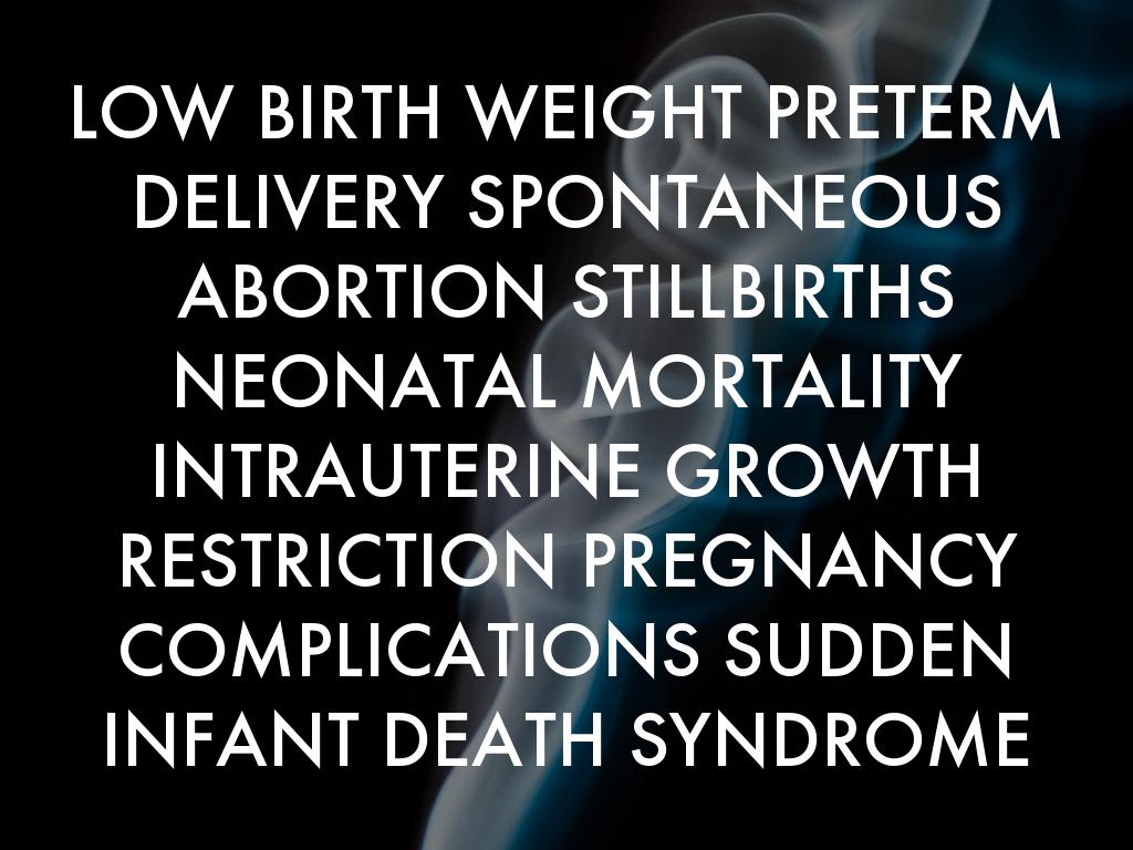 LOW BIRTH WEIGHT PRETERM DELIVERY SPONTANEOUS ABORTION STILLBIRTHS NEONATAL MORTALITY INTRAUTERINE GROWTH RESTRICTION PREGNANCY COMPLICATIONS SUDDEN INFANT DEATH SYNDROME