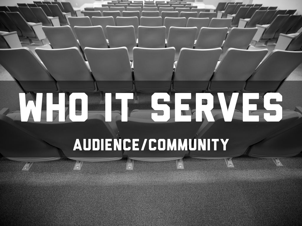 Make clear who this project/service/product is aimed at. Is it for a particular geographic audience, or a particular demographic group? Or is it for people with a particular interest (i.e. a psychographic?) Or maybe it's for people who have a particular problem or a certain need. Make clear who you are building this product/service/project for so that it's clear who will benefit from it.