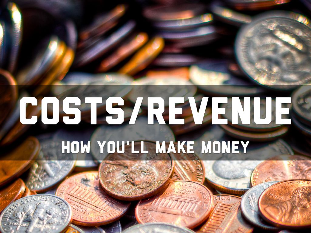 How will you make ends meet? What do you expect your primary three, five or 10 costs will be? What do you expect your primary revenue streams to look like, and how long do you expect it might take for you to get to that point? Why will people pay for your service/product and how will the value proposition differ from other products/services people are paying for?
