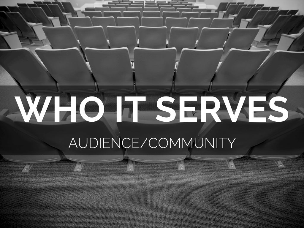 Make clear who this project/service/product is aimed at. Is it for a particular geographic audience, or a particular demographic group? Or is it for people with a particular interest (i.e. a psychographic?) Or maybe it's for people who have a particular problem or a certain need. Make clear who you are building this product/service/project for so that it's clear who will benefit from it.