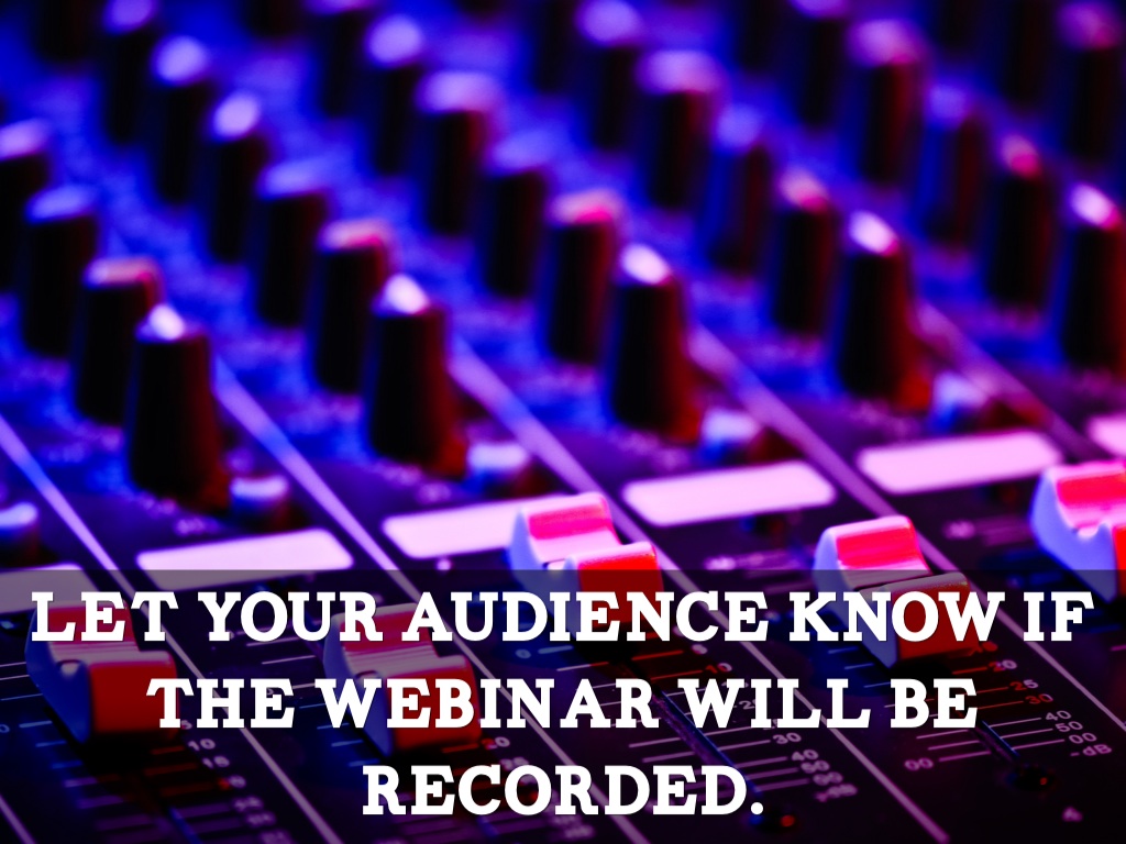 Let your audience know if the webinar will be recorded.