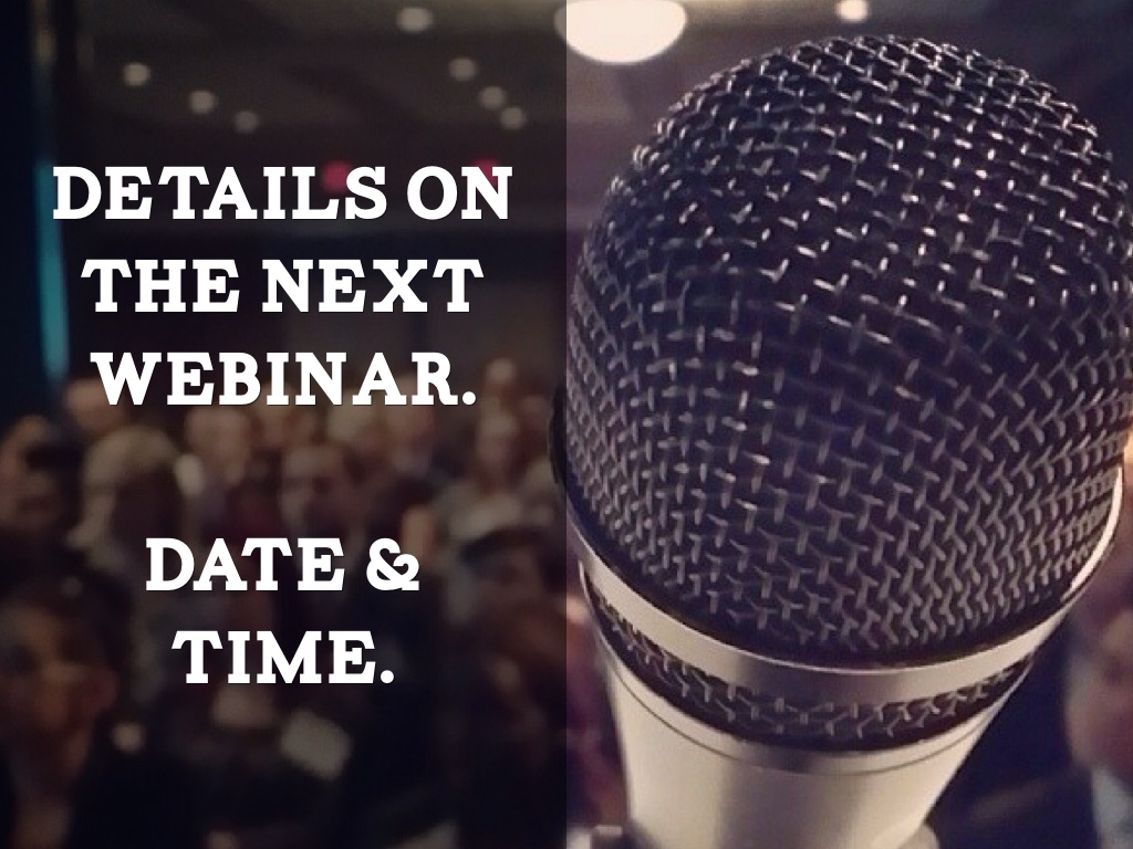 Details on the next webinar.