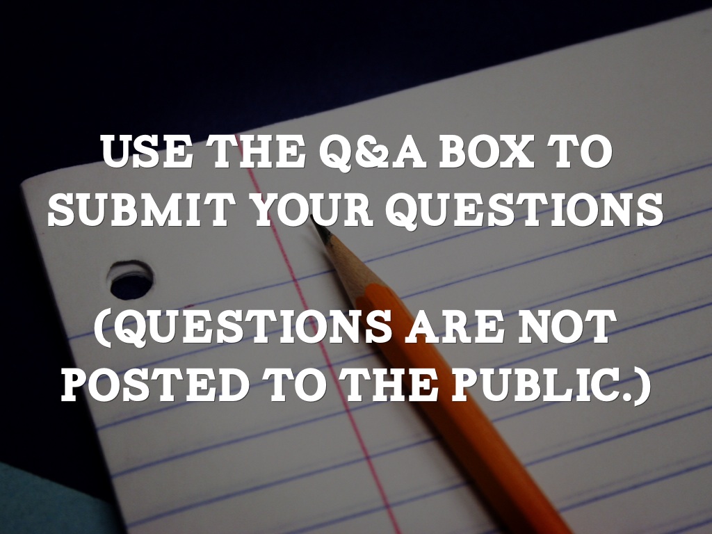 USE THE Q&A BOX TO SUBMIT YOUR QUESTIONS