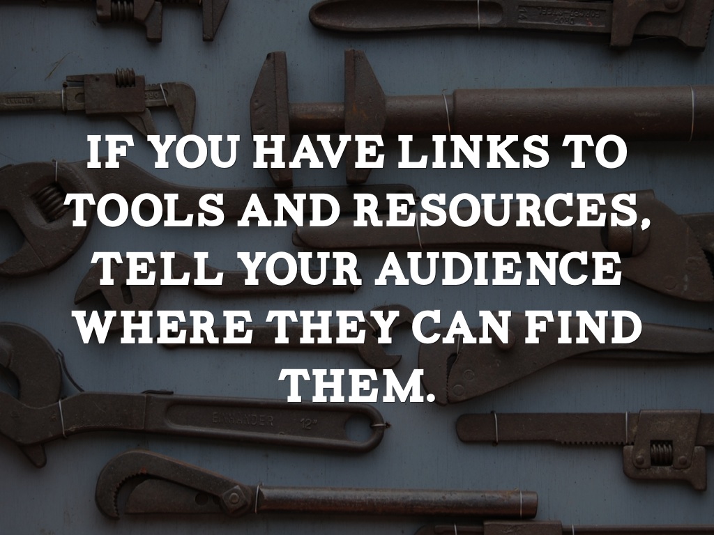 If you have links to tools and resources, tell your audience where they can find them.