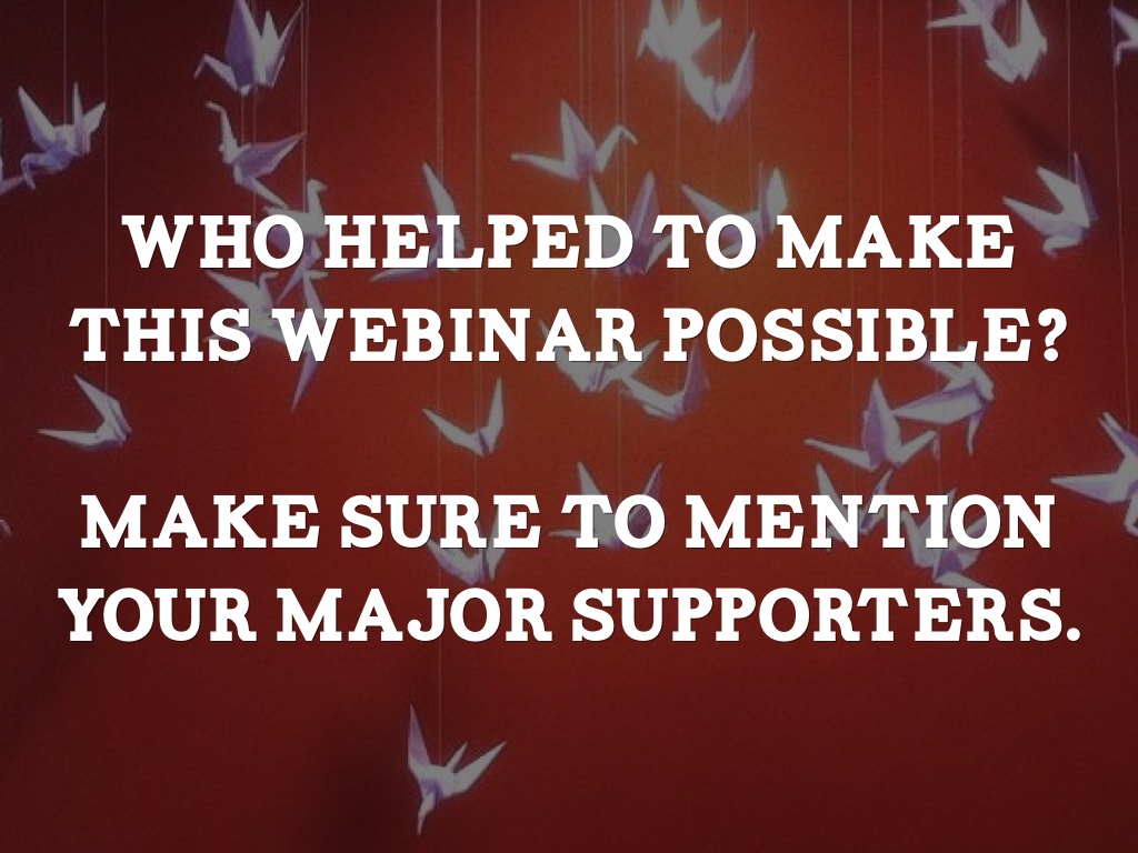 Make sure to include a slide mentioning your major sponsors and supporters.